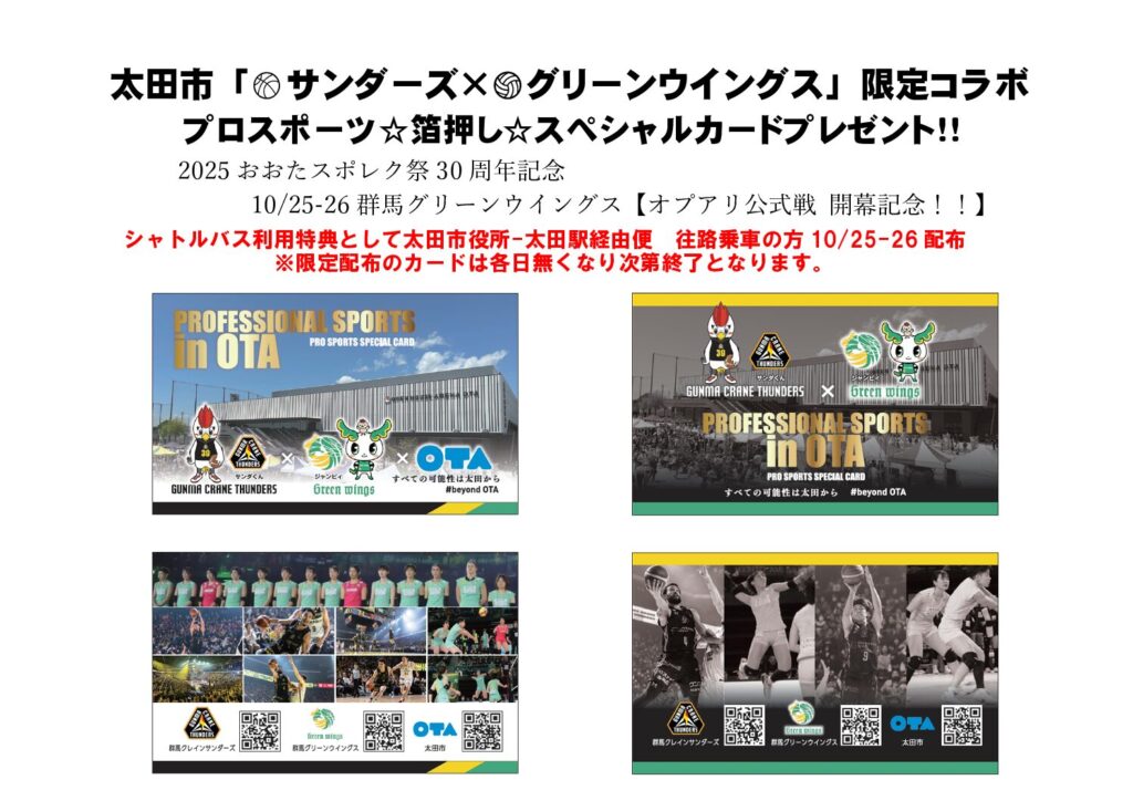2025年10月25日(土)・26日(日)にOPEN HOUSE ARENA OTAにて開催されます「2025-26大同生命SV.LEAGUE 第3節 PFUブルーキャッツ戦」と太田市主催の「太田スポーツ・レクリエーション祭」が同時開催されます。