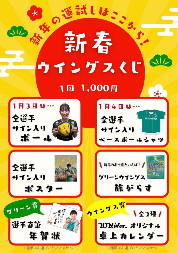 この度、2026年1月3日(土)、4日(日)にヤマト市民体育館前橋にて開催されます第10節 Astemo戦にて「新春!ウイングスくじ」を販売いたします。