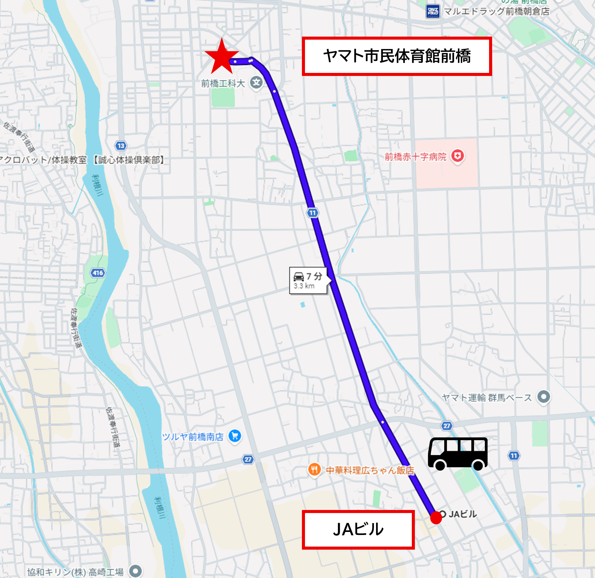 周辺での混雑緩和のため、あらかじめJAビル駐車場への駐車をお願いいたします。当日は、臨時駐車場よりヤマト市民体育館前橋までシャトルバスを運行いたします。