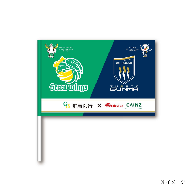 ザスパ群馬とグリーンウイングスのチームロゴがデザインされた「コラボフラッグ」をご来場された2,000名さまに先着でプレゼント🎁
