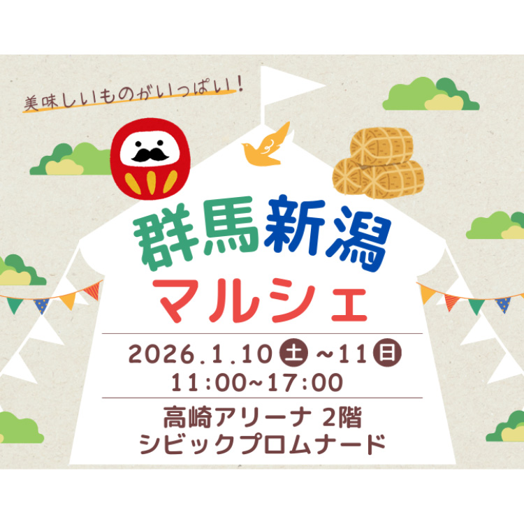 1.10 SAT - 11 SUN「群馬新潟マルシェ」開催!アリーナ2階にて「群馬新潟マルシェ」を開催します!